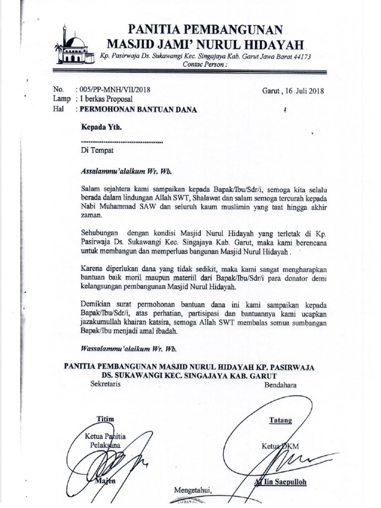Contoh Surat Permohonan Sumbangan Pembangunan Masjid – CND | Ilmu sosial, Iman, Surat